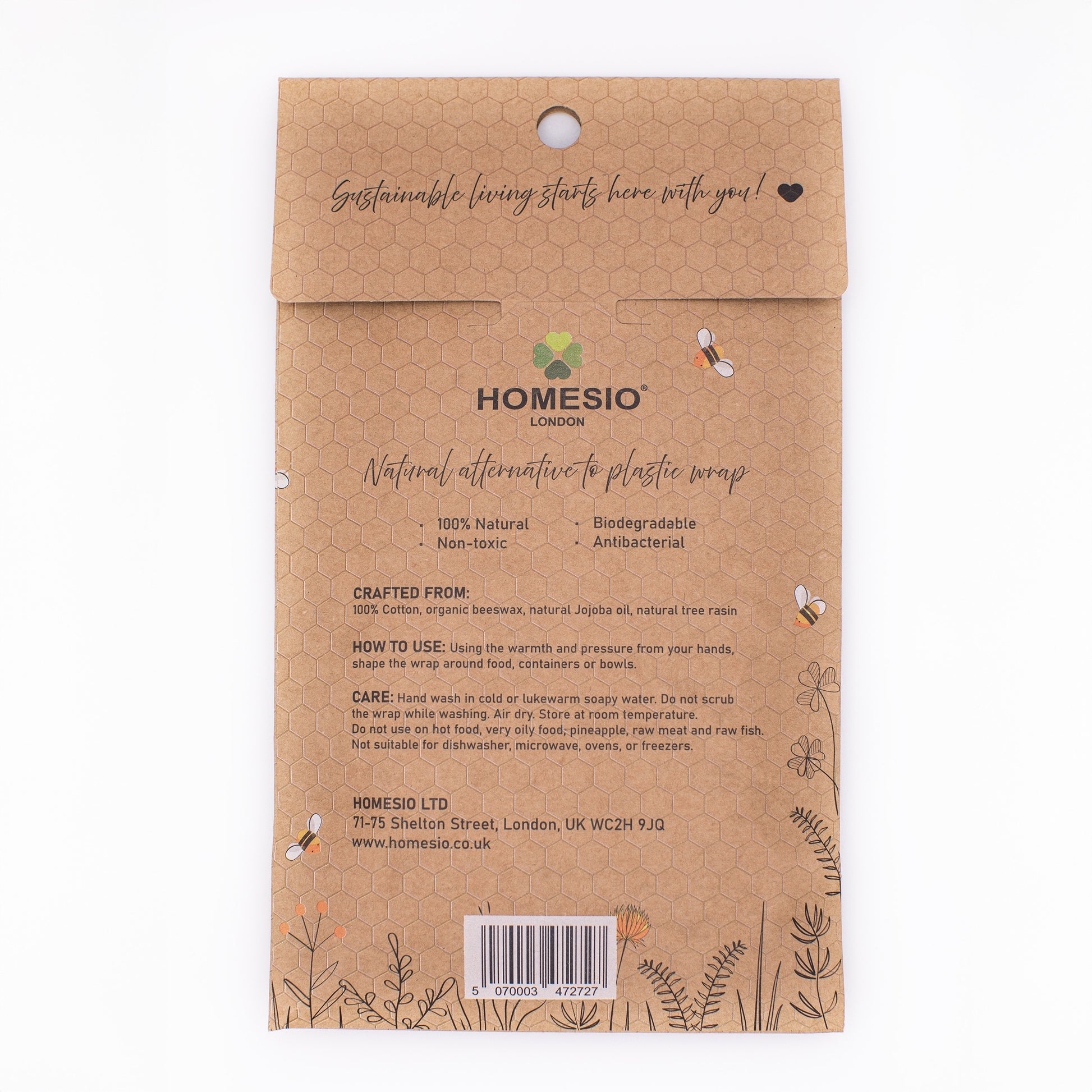 CARE: Hand wash in cold or lukewarm soapy water. Do not scrub the wrap while washing. Air dry. Store at room temperature. Do not use on hot food, very oily food, pineapple, raw meat and raw fish. Not suitable for dishwasher, microwave, ovens, or freezers.